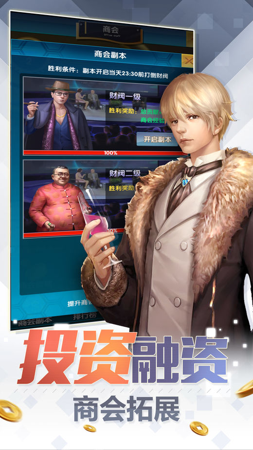 百万赢家是一款非常好玩的模拟总裁养成手游,在游戏中,玩家可以化身集团总裁,开公司、招员工、做投资,享受当企业大亨的感觉,欢迎喜爱的朋友到72ce下载试玩!