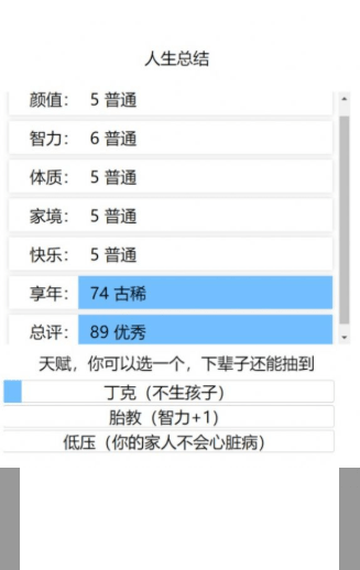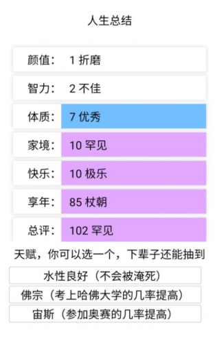 人生也会呈现不同的面貌,获得更多选择,选择合适的天赋,调整各种属性。