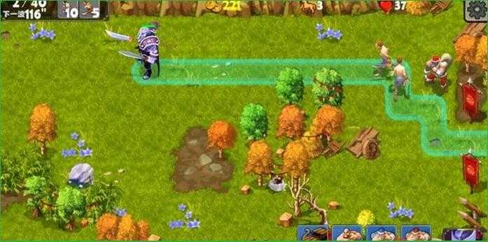 跟其他塔防游戏不同的是,游戏中的怪物行进路径不再是定死了的,而是由武将的移动方向来决定。根据武将可以自动移动来布置敌人的行进路径特征,玩家可以利用沼泽和高台设计,让士兵的战斗力上升到最大值。因为沼泽可以减慢敌军的移动速度,而高台和哨塔上的士兵能增加攻击力和攻击范围。