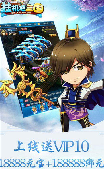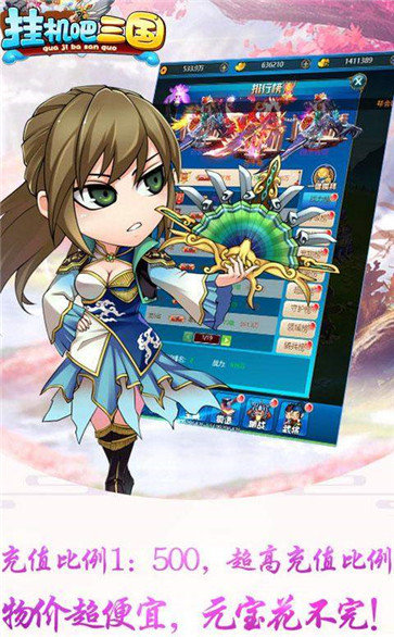 挂机吧三国带你体验轻松放置挂机的Q版三国,游戏中有着精美2D画面Q萌人物设计,搭配三国主题和中国传统神话故事,实力打造精品回合制经典三国策略,挂机三国,解放双手,成就霸业,我邀请您,感兴趣的小伙伴下载游戏试试吧。