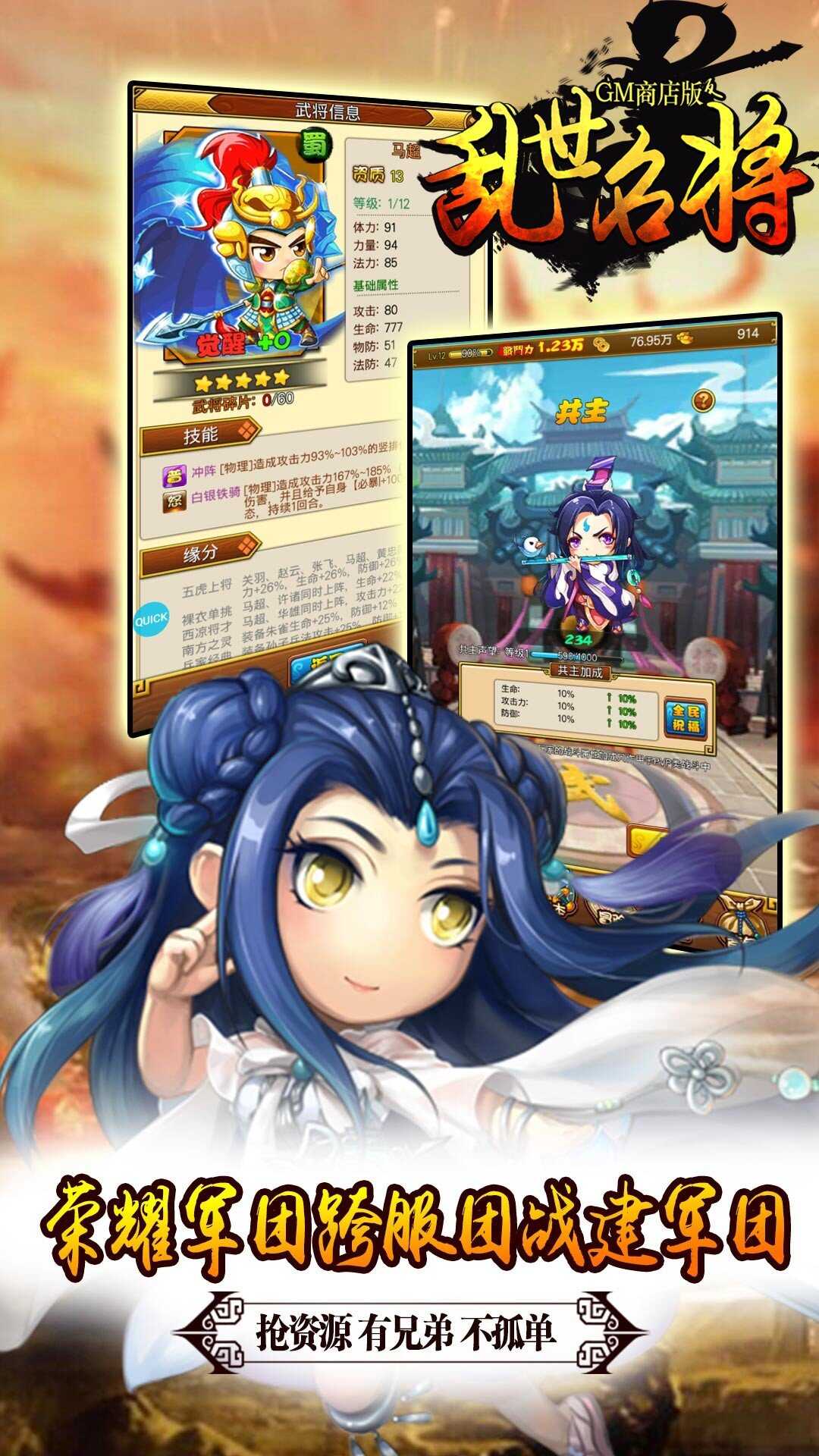 游戏内上线送满v,送15000金判,送武将。开通GM权限后,在GM商店里面每天可以免费拿海量金判,顶级红色武将等等海量道具乱世名将gm商店版是一款全新的策略回合卡牌对战游戏,经典画风武将、专属战斗动作、傲娇对话独白、演绎Q萌新境界。碎屏级怒气必杀特效,腾空、连击、爆发,让你的战斗体验一气呵成!以丰富多变的战斗体验、知名画师制作的超精美卡牌、大师级的画面表现以及极富策略性的玩法带领玩家重回烽火连天的三国,呈现前所未有的全新三国体验!