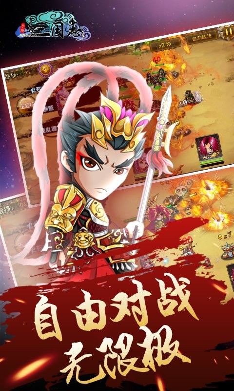 画面非常精致炫美的三国题材类游戏,游戏中的人物刻画非常的精致,而且音效也非常的棒,带领玩家体验最刺激的三国大战!玩家在游戏中可以选择不同的战斗模式,体验和以往不同的三国!