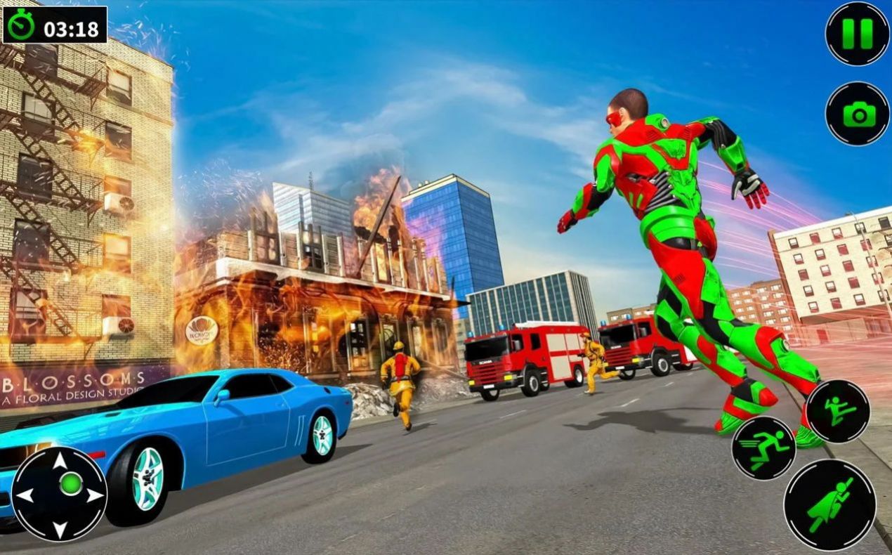 2、体验到非常精彩的玩法,你需要操控一位超级英雄在城市里完成不同的救援任务。