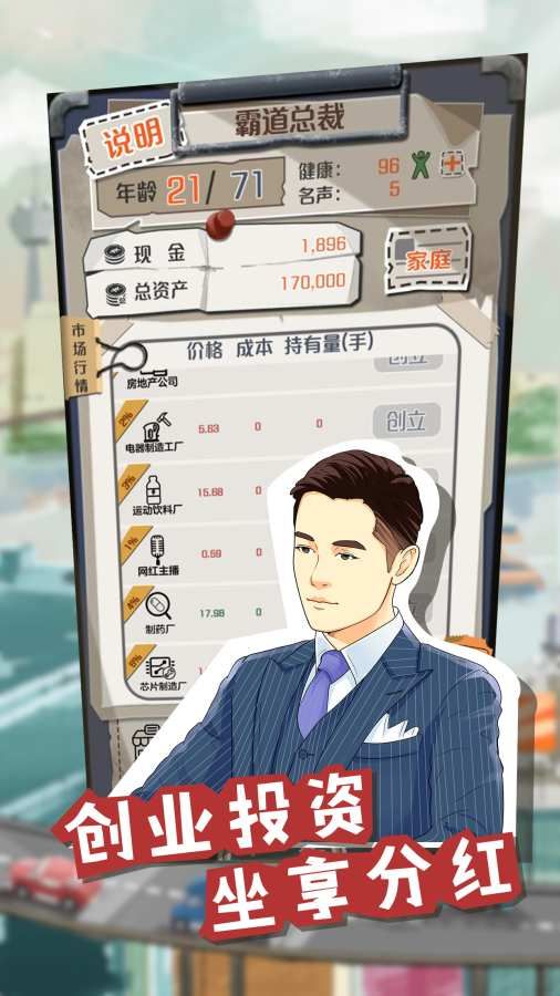 1、白手起家的你,将从一个小市场开始自己的人生转变,倒卖物资,积累第一笔资金。