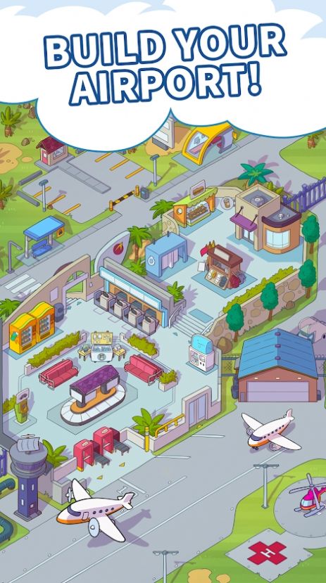 3、放置建设一个卡通风格的航空公司,要注意机场的安全工作,购买了新的运输飞机。