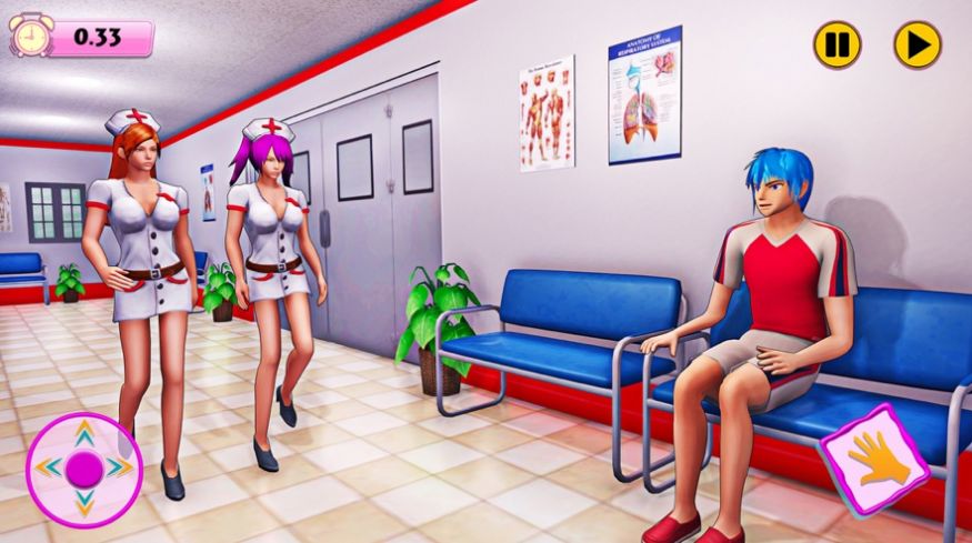 场景画面清新立绘精美,为来到这里的病患进行包扎!来一场浪漫邂逅,探索动漫护士医院爱情生活故事。