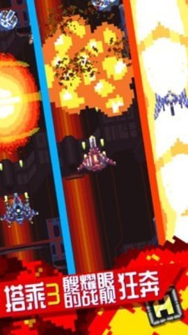 轰炸狂奔是一款像素飞行类射击游戏在游戏中你要驾驶一辆战机消灭众多的敌人,点击任意地方并滑动屏幕就可以进行快速移动,还有全新的boss模式等你来体验,在游戏中可以获得许多道具。