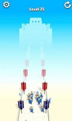 收集敌方的小人,增加自己的人数,人数越多,战斗力也会增加。