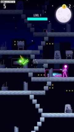 在游戏中,玩家将控制一个霓虹人,全新升级的火柴人归来,运用你的枪械在游戏世界内疯狂闯关。控制自己的角色来利用各种各样的武器来开始战斗,需要拿起你的枪去消灭敌人,点击屏幕射击高阶梯的敌人,爆头会有慢动作和金币爆出。快来试一下吧。