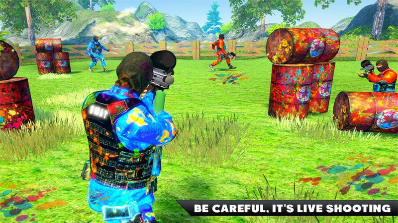 很好玩的彩弹射击手游,游戏中有彩弹机枪,霰弹枪,狙击彩弹和突击步枪颜色烟火等多种武器,玩法刺激有趣。
