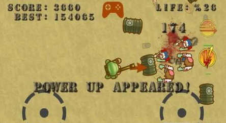 玩家需要一边走位一边射击,而游戏视角则是完全的俯视,减低了一些控制上的困难,你可以通过左下方的虚拟按钮控制角色在俯视平面中走位,然后通过右下方的按钮进行射击。