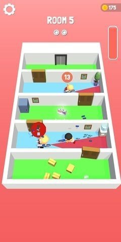 玩家在游戏内要与2个卡通小人作战,在屏幕内可以看到你的血量和小金币。