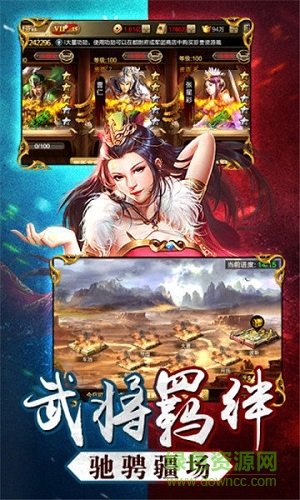 精美2D写实风格:华丽的战斗画面,酷炫的技能特效,真实的三国场景以及上千风格特异的武将形象。