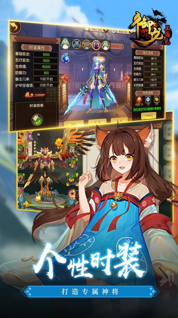 御龙三国志是一款以三国为背景的arpg卡牌游戏。游戏中的角色形象可爱、生动,游戏画面精美却不乏趣味。玩家可以根据自己的喜好选择破军或者影刃作为自己的主公进入这个不一样的世界。游戏拥有各具特点的武器和天赋符文、华丽的技能、丰富的副本、有趣的好友互动,玩家可以从中获得简单、刺激、富有策略性的游戏体验。三国卡牌王者荣耀与剑的冒险即刻启程!