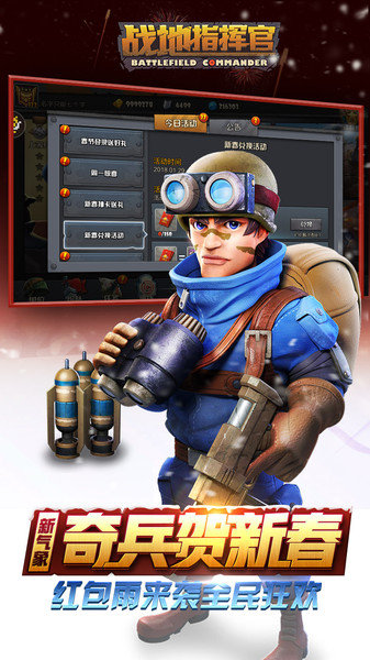 在战地指挥官中游戏里玩家可以自由搭配各种兵种,必须要合理的安排攻击阵容,你作为一国的指挥官将领,多种竞技与休闲玩法等你体验。