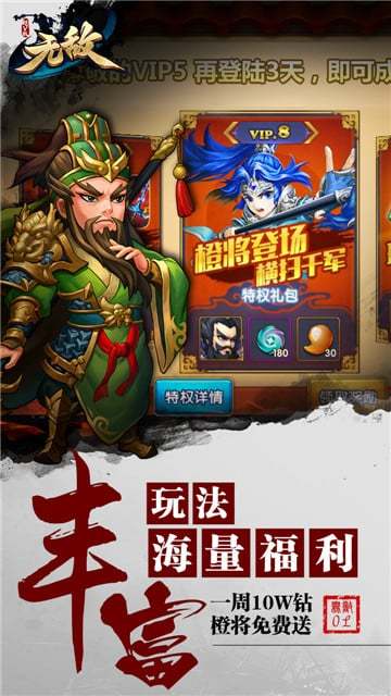 无敌手游是一款拥有众多历史上英雄将领的卡牌对战类游戏放置挂机玩法,原汁原味的画面等你来欣赏,各种羁绊技能随时培养,轻松满级,各大boss随心挑战。