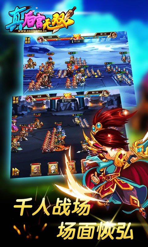 真后宫无双是一款Q版三国题材策略卡牌手游。游戏以曹操筑铜雀台而兵发东吴,最终战败的故事为背景展开剧情,玩家在游戏中扮演的小兵通过不断努力,最终达到顶峰。真后宫无双的特点:•战斗新颖,大型兵团作战,千人同屏,体验战场的惨烈•策略十足,战前排兵布阵,兵种相克,克敌于千里之外•国战激烈,国战三大阵营,你来我往,一统江山我为王。
