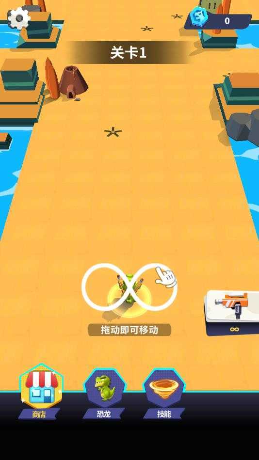 恐龙突突突游戏中玩家轻轻拖动屏幕即可进行角色方向的控制关卡的难度逐渐增大,各种类型的恐龙角色等你去解锁,全新的单机竞技挑战模式。