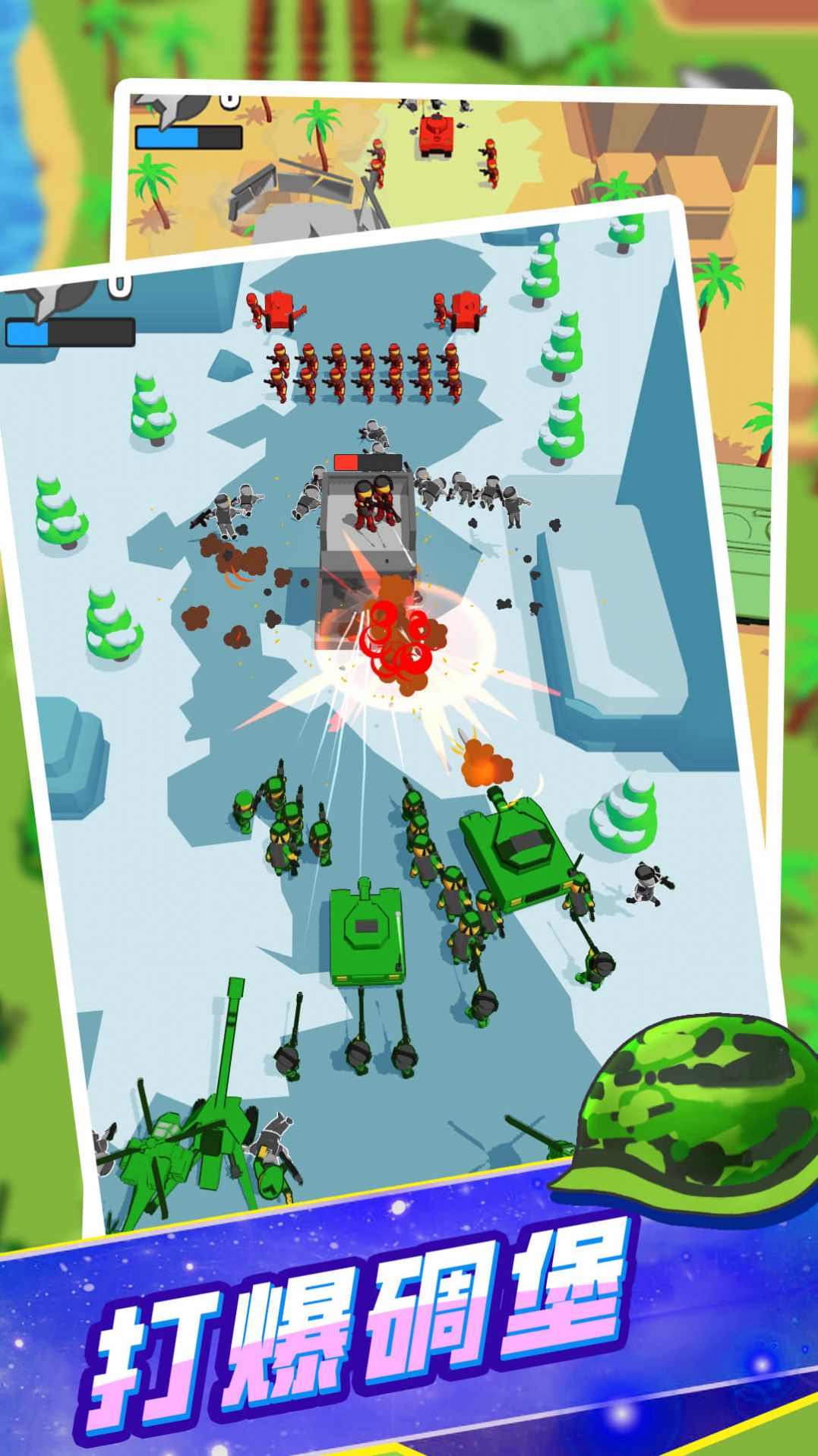 1、真实模拟战场画面,每个关卡都富有挑战性,卡通的风格才能玩的欢乐。