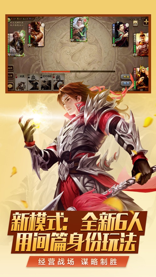 v4.0.31.三国杀经典模式的延续,伪装身份、尔虞我诈,除了自己,谁也不能相信;2.【新模式玩法】:- 谋攻篇:六名玩家参与的全暗身份模式,主忠反内,猜我是谁;3.【新武将发布】:- 文鸯:使用【杀】或【决斗】时,可以获得对手手牌或弃牌以增加伤害,史诗武将;4.【新皮肤发布】:- 史诗皮肤首发:笔翰如流*王粲、长风破浪*凌统;5.其他更新内容:- 优化了举报处罚机制;- 增加了武将皮肤技能名称搜索功能;- 增加了卡牌拖动使用的机制;- 优化了梦之回廊活动的提示公告;- 优化了牌局内武将形象区域互动效果。