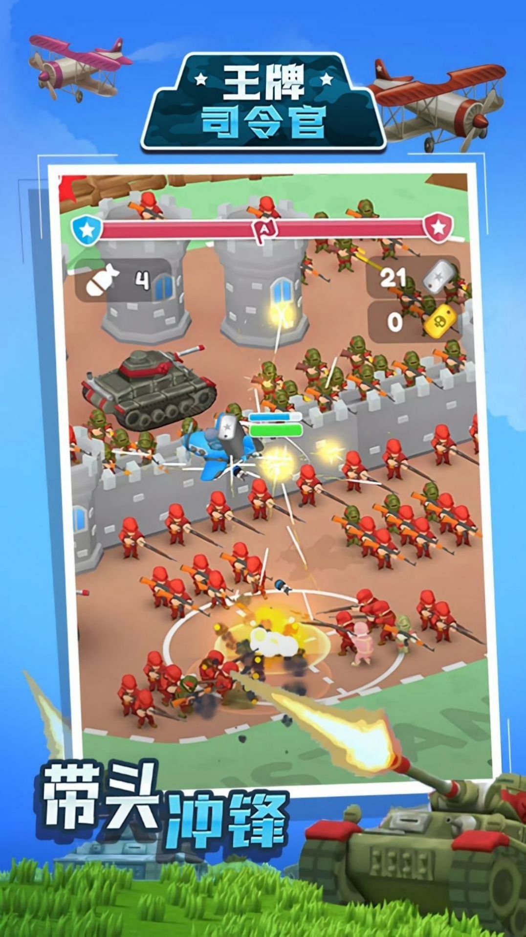 王牌司令官是一款策略塔防闯关类游戏,指挥军团自由出击,在战场上完成新的任务,参与精彩战役击败所有对手,展现你的策略能力,不断扩大自己的领地范围,在这场战争中获得更多的优势,自由体验刺激的对战玩法,还能解锁全新兵种,打造最强军团,在每一场战斗中都能轻松碾压敌人。
