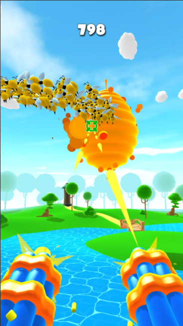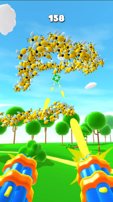 蜂群袭击是一款射击闯关类游戏,大量蜜蜂正在守护自己的蜂巢,你可以自由射击消灭蜜蜂,不能让蜜蜂靠近自己,体验刺激的人蜂大战,有多种武器可以选择,自由调整射击方向,快速完成射击挑战,还有大量关卡可以解锁,去抢夺蜜蜂的蜂蜜,提升射击技术,轻松击败蜂群。