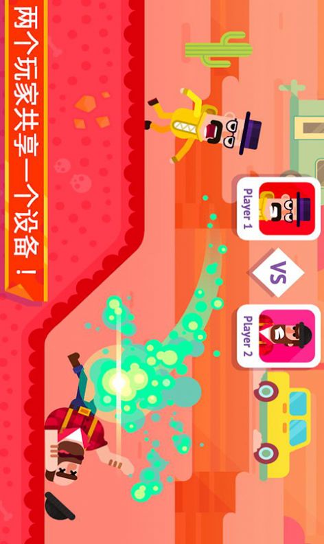 1、这是一款画风滑稽的趣味休闲射箭游戏,游戏中两个人物相隔数米。