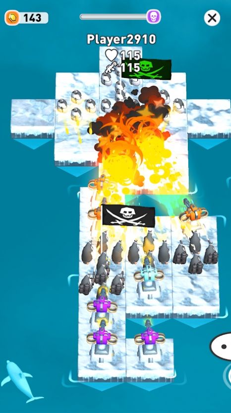 3、在这场激烈的战役之中一起来完成刺激的战斗,你要带领企鹅的军团来守护他们的地盘。