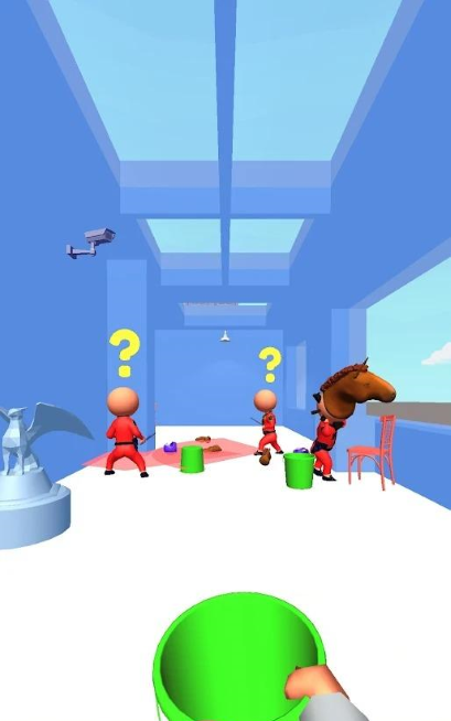 3、你可以使用各种水桶、头盔等各种帽子扣到守卫的头上,遮住他们的视野。