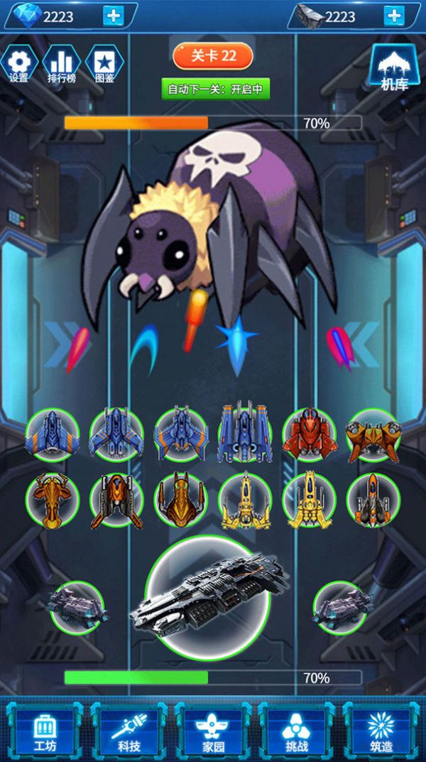 3、在游戏中不断打造出强力的宇宙飞船,拥有众多的武器装备等着你来进行武装。