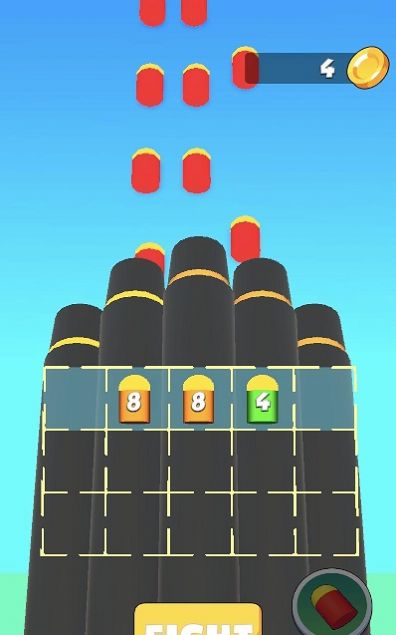 2、将相同伤害的子弹合成在一起,形成更高级别和伤害的子弹。
