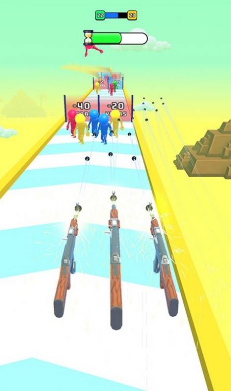 3、这里对决的是武器数量,玩家发射你的武器通过增益门槛,增加武器数量。
