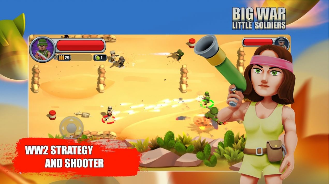 大战小兵中文版是一款在快速的战斗射击中完成最多关卡的游戏,你的每次射击都会有不错的结果,和你的伙伴来一起完成这些射击竞技,你可以有自己的方式和实力来成长下去,还有最多的射击战斗方式来帮助你完成精彩的射击体验,和你的伙伴来实现你的射击战法,你可以有许多的方式来成功的变强下去。