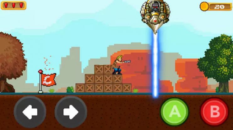 1、简约清新的游戏画面,横版的闯关模式,你将操作约翰不断的参与各种的战斗。