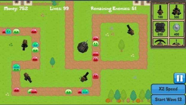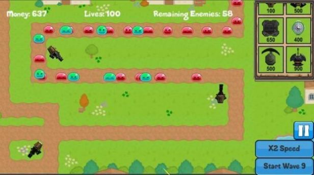 1、非常多的防御塔等着玩家们来使用,各种各样的史莱姆敌人等着玩家们前去消灭。