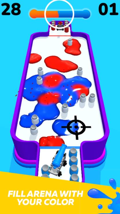 Color Splat Arena安卓版是一款趣味彩色射击游戏,玩法很简单,就是在关卡中收集随机刷新的彩色罐子,然后将罐子发射出去,将关卡领地染成你的颜色,这块领地就是你的了,在规定的时间内将所有领地染成你的颜色,或者时间结束,你这边所占领地更多,那就能够获得游戏胜利!