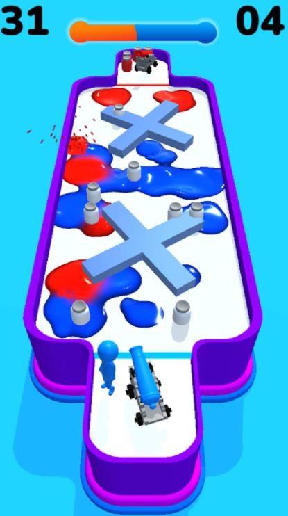 2、在自己领地上收集更多彩色罐子,加快大炮的攻击力度,获得更多领地;