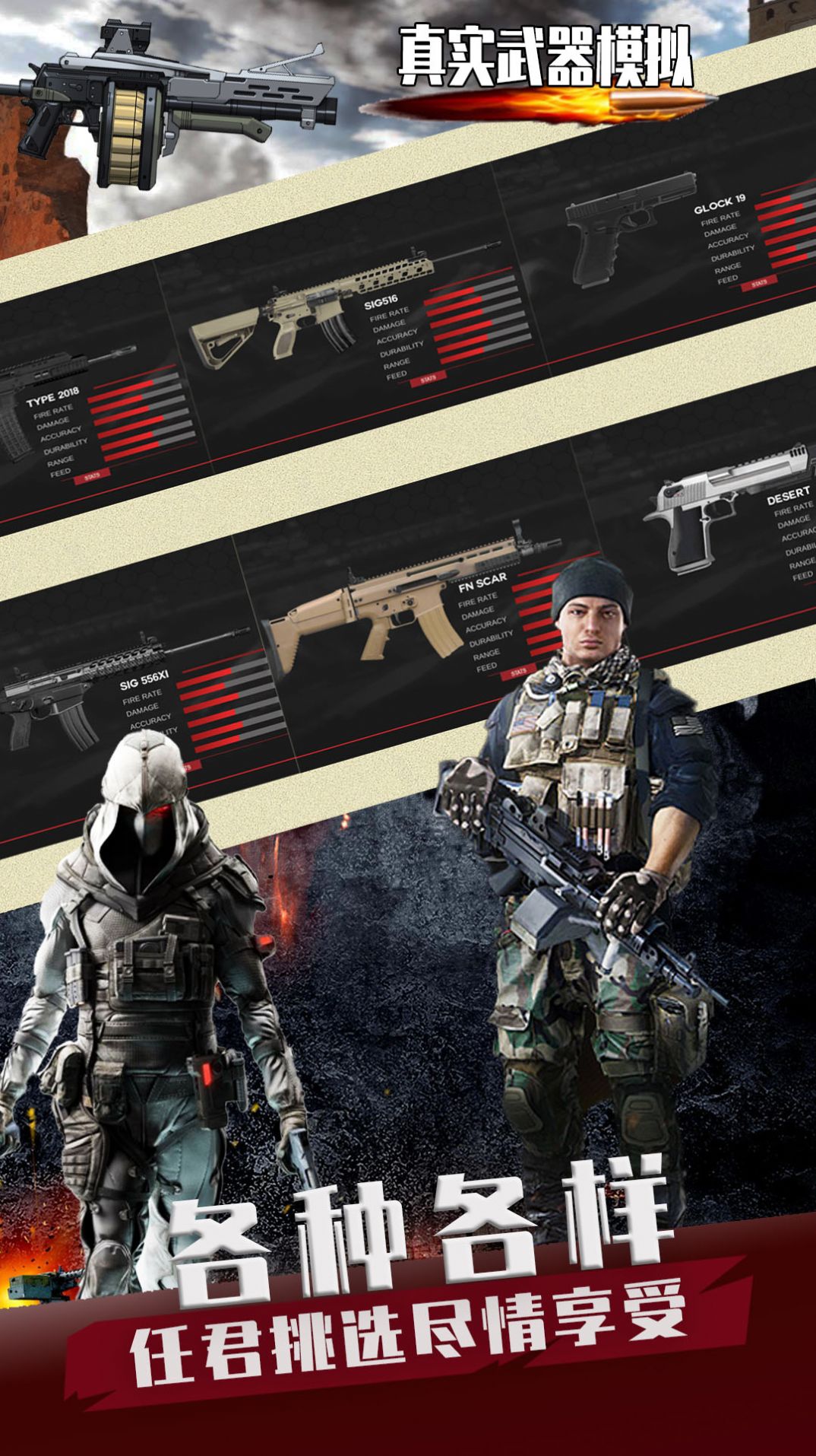 逼真的物理碰撞声音光效和震撼的反冲力,3d写实画面,真实的模拟了枪械的外观细节。