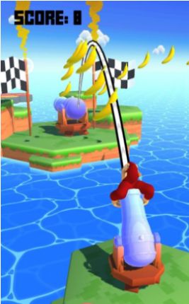 3、多试几次就好啦,将猩猩射到下一座小岛的同时还能收集香蕉,通过多次的炮弹射击,到达终点。
