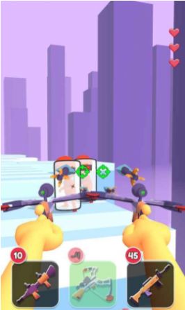 1、左右滑动屏幕进行瞄准,进入射程后自动射击,完成射击挑战。
