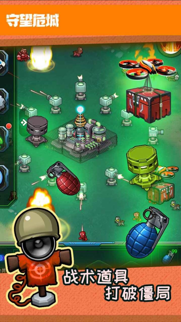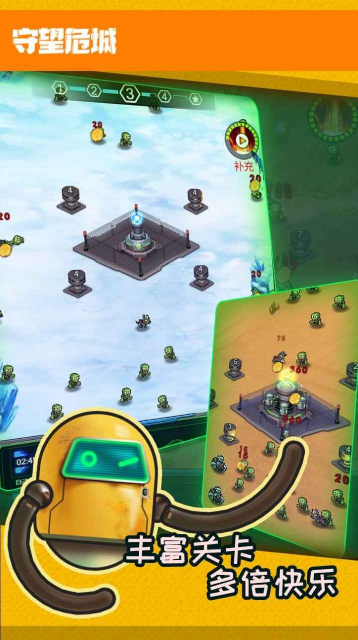 守望危城游戏,你需要不断的安排你的武器来守护你的阵地,卡通的游戏界面,各种场景你都可以经历,还有很多不同的道具你可以去使用,游戏中的关卡非常的丰富,你需要利用自己的智慧展开不同的阵容布置才能获得更多的胜利。