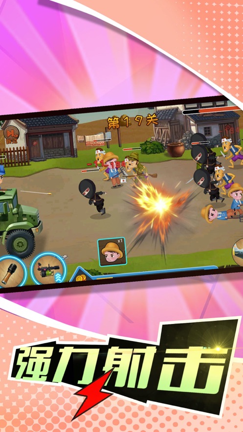 9鬼子进村枪战王者游戏是一款简单有趣的射击闯关游戏,为了保护自己的村子,你需要集结更多的战士来进行防守,鬼子的队伍人数众多,你需要提升自己的火力,才能歼灭更多的敌人,丰富有趣的道具可以自由完整,快来完成精彩的抗战,对抗这些坏蛋吧,自由排兵布阵,完整英雄的更多站位搭配,让自己的村子足够的安全,你还需要招募更多的村民来帮助你战斗哦。