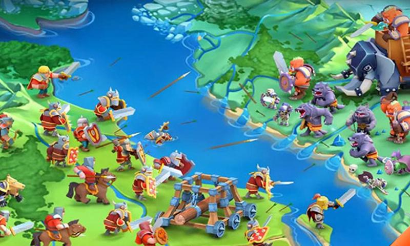 2、玩家化身勇士,手持长矛武器,集结勇士吹响战争号角,一起征战王国。