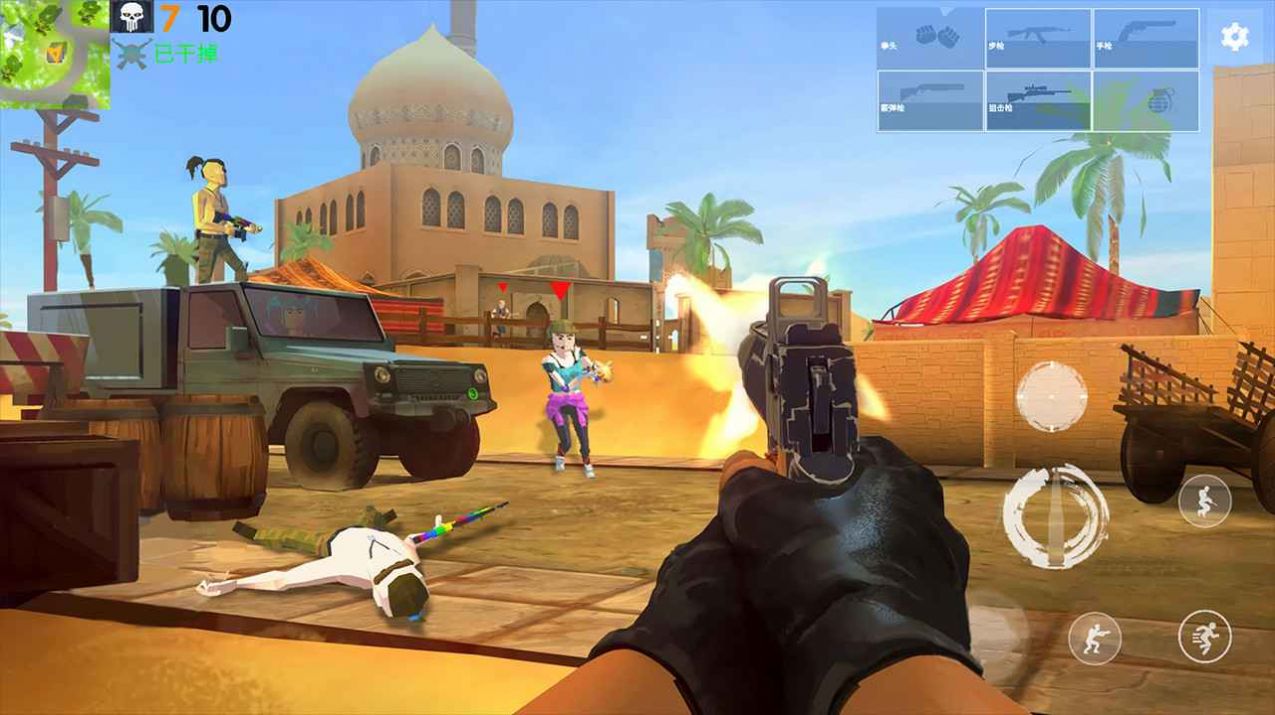2、可以操控自己的角色在这个战场上面进行刺激的射击对决,拿取地上的武器来进行不断的战斗。