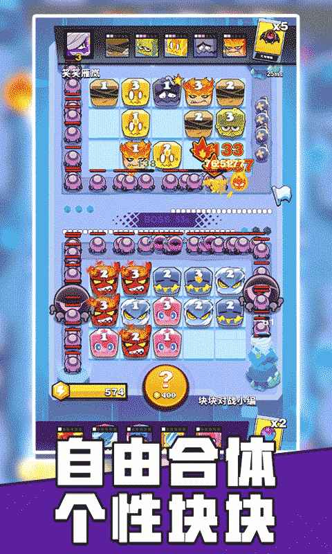 块块对战游戏是一款趣味的策略塔防类的游戏,游戏中有很多不同的角色你可以去升级,各种各样的关卡在等待着你,全新的冒险体验,简单的游戏玩法,游戏中的界面非常的卡通精美,几分钟就可以轻松的玩转一局,又快又好玩。