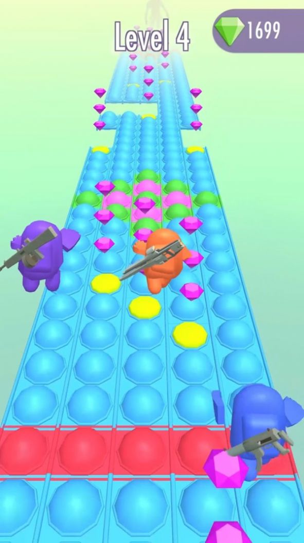 泡泡太空杀游戏是一款融合了跑酷、射击的策略游戏,你需要在前进的路上不断的收集钻石来获得财富,然后就可以购买高级武器去击杀其它角色,最后达到终点的玩家就是胜利者。