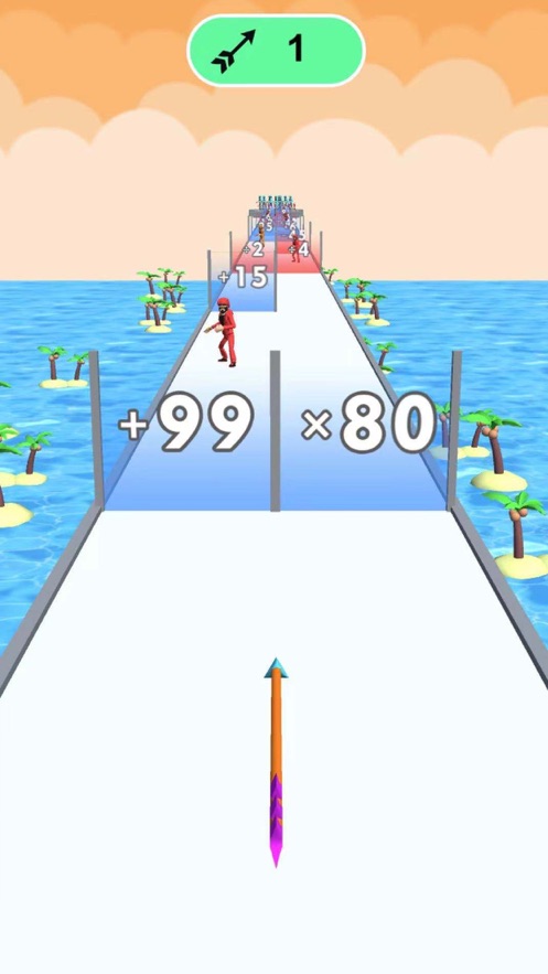 2、在游戏中加入了加减乘除,玩家操控箭头穿过屏障来计算出更多的箭头,在关卡结束后来击败敌人。