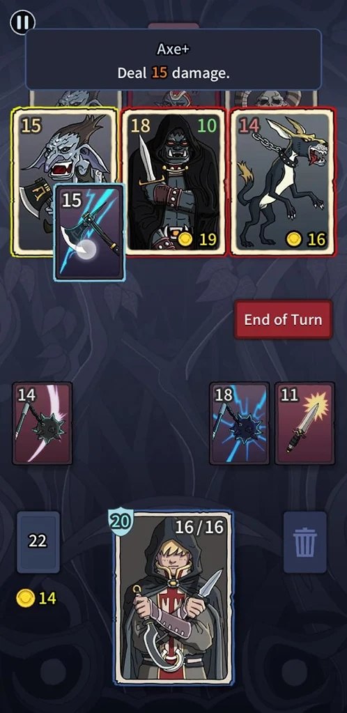 卡牌战士中文版是一款使用卡牌召唤强者帮助自己打败恶魔怪兽的游戏,森林很多的生物都被恶魔侵袭给中下了诅咒,玩家需要做的事情就是帮助这些生物来打败怪兽,只有打败了怪兽才会接触众多的诅咒,当然这也不是那么容易的,只要打败而来怪兽就会有卡牌奖励,帮助你完成更多的战斗。