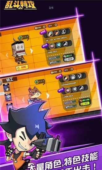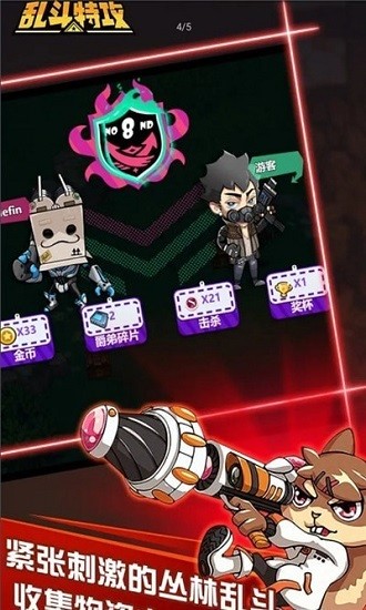乱斗特工游戏是一款非常好玩的射击类型的游戏,游戏中有非常多的角色,玩家可以自由的搭配技能使用,游戏中有非常多的炫酷武器,玩家可以自行来游戏中完整使用,游戏速度非常的快,几分钟就可以玩一把,非常适合无聊的时候打发时间。
