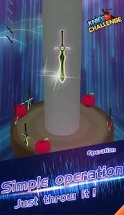 1、游戏拥有十分简约移动的操作方式,在这款游戏之中玩家可以投掷不同的飞刀,砍碎苹果;